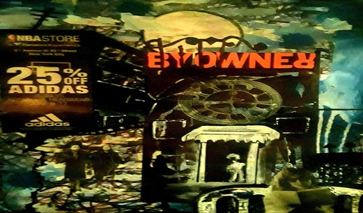 All three artworks are mixed media collage pieces made with found newspaper and magazine paper, as well as materials like acrylic paint, spray paint, marker, watercolor, graphite, charcoal, and more. The piecess all deal with society and the people living within it. The artworks are meant to be an artistic photograph of a scene in time.